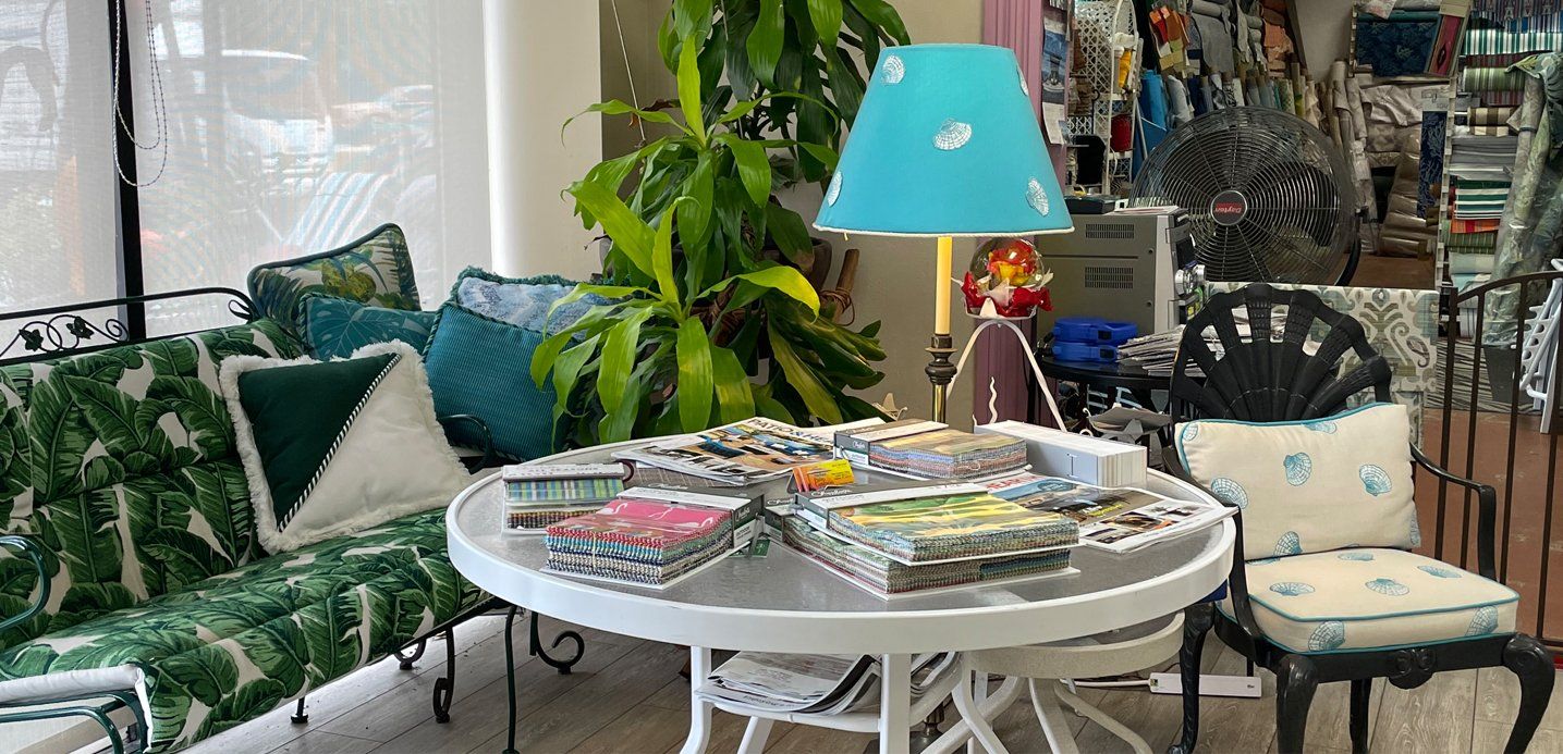 Because we offer a full spectrum of services — including outdoor furniture fabric designs and restorations, custom outdoor patio cushions in Bonita Springs, FL, furniture repair, custom outdoor fabrics and drapery, custom lampshades, market umbrellas, outdoor furniture, and custom upholstery — your décor need never feel disjointed. We match fabrics, patterns, and finishes so you get a unified outdoor palette. Your chairs, sofas, cushions, umbrellas, and drapes can all “speak the same language.”